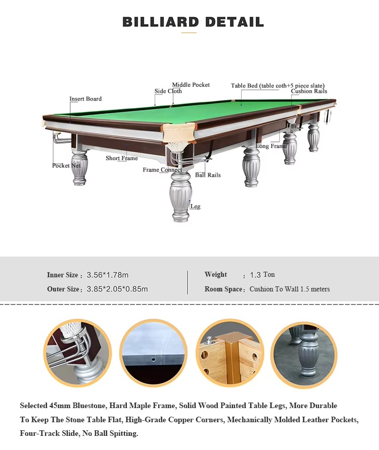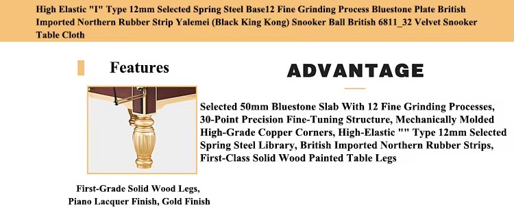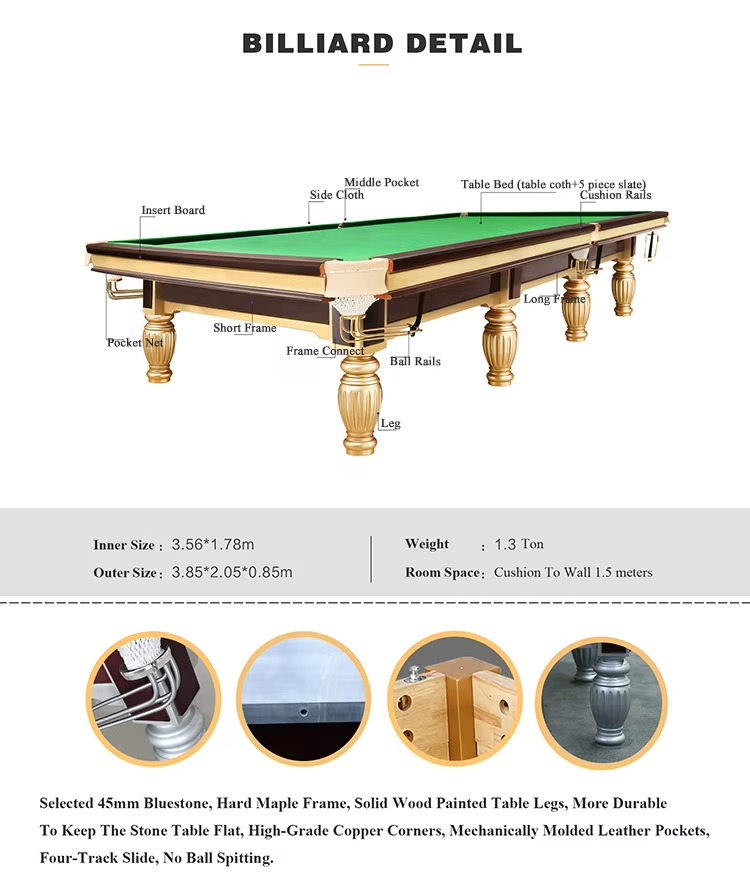 12ft Snooker Billiards Table With Northern Rubber and Top a Grade Jiujiang Slate