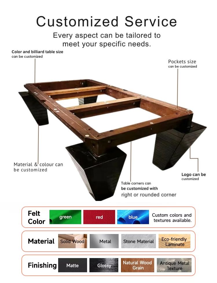 All of our pool tables can be customized according to your needs