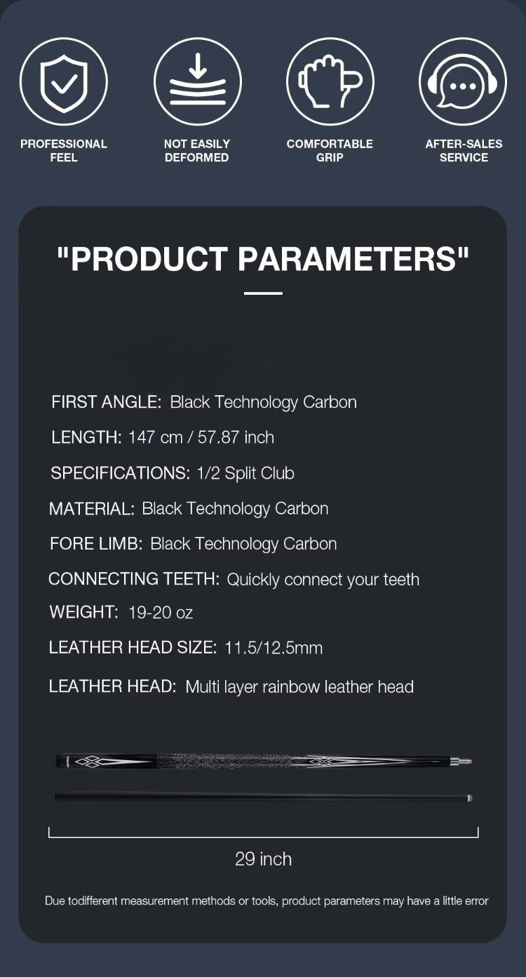 Step up to the table with a cue that elevates your game from the very first hit—precision, power, and professional consistency all in one sleek carbon fiber design.